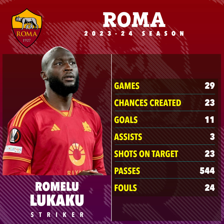 Lukaku, meanwhile, has netted 11 goals in 29 Serie A appearances for Roma, with 19 in all competitions.