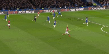 A DAGGER BEFORE HALF-TIME! 2-0! Manchester United take the wind out of Chelsea's sails on the stroke of half-time as Pogba drives a fierce header just under Kepa on the end of a lovely delivery from Rashford! That was a venomous header from the Frenchman, but Kepa should be expected to keep that out.