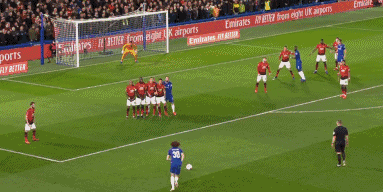 DOUBLE SAVE! Great work by Romero, who finds himself deputising once again for De Gea as United's FA Cup goalkeeper. First he's able to dive across to his left to parry a lovely David Luiz free-kick that was bending and swerving all over the place, before smartly recovering to deny Pedro's fierce effort on the rebound!