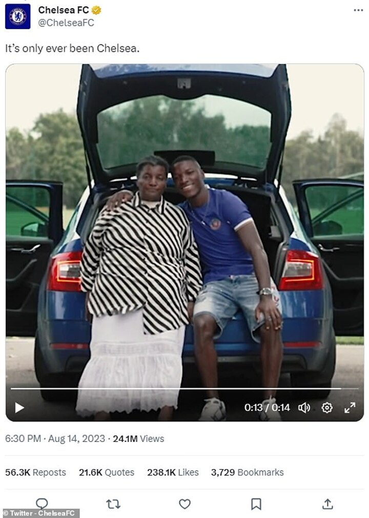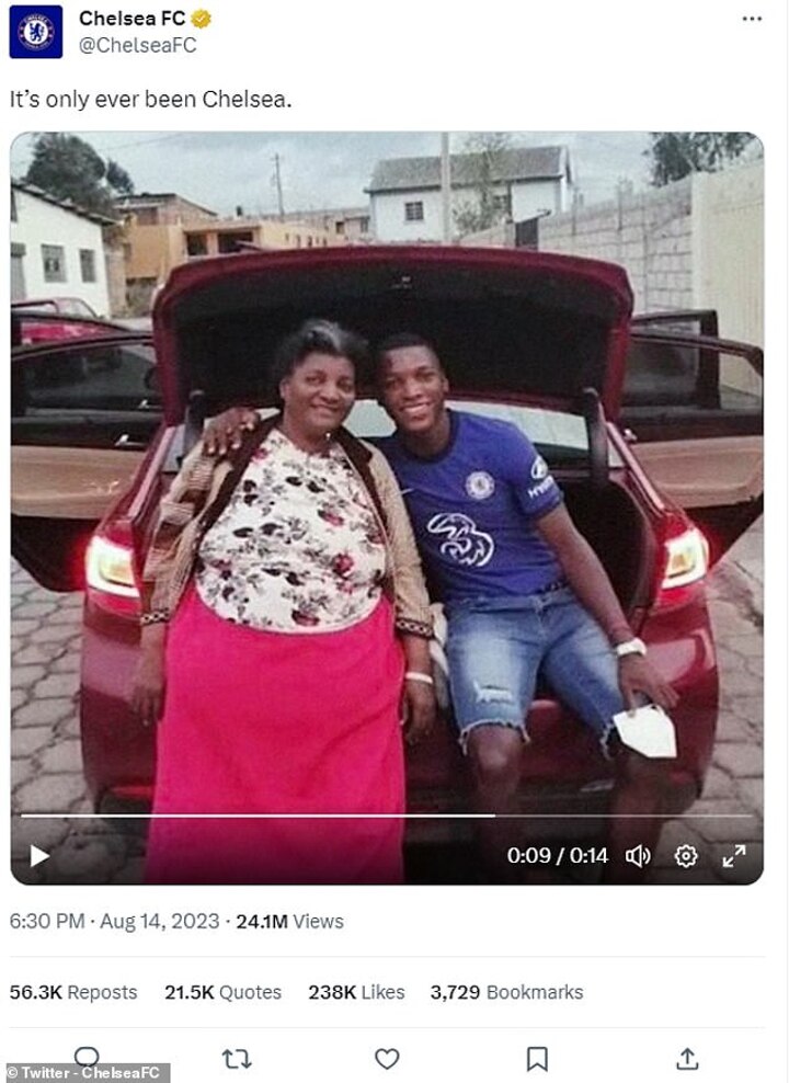 'It's only ever been Chelsea', read one of their tweets, as the club posted a video of Caicedo in a Chelsea top with his mother, before comparing it to a similar photo from 2020, taken in Cayembe, Ecuador.