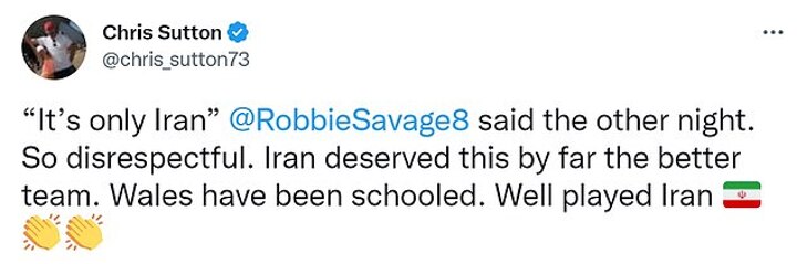 '"It's only Iran" @RobbieSavage8 said the other night,' Sutton tweeted.