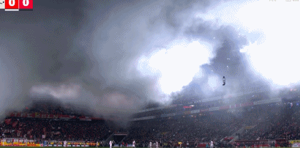 Said El Mala forced Manuel Neuer into an early save at his near post before the game was halted soon after as smoke from flares within the crowd descended onto the pitch.