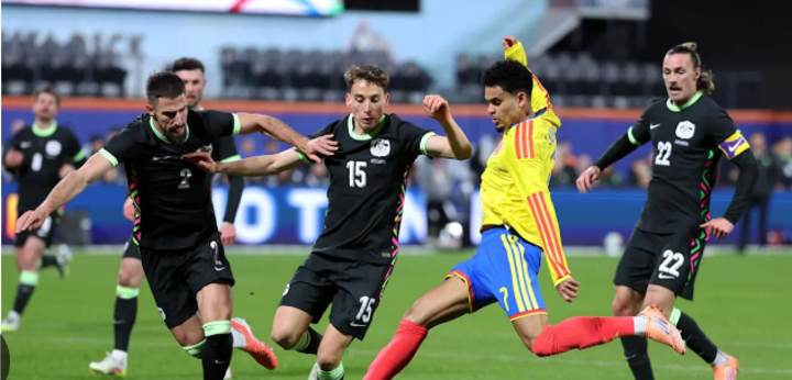 Colombia started quickly and only a fine save from Paul Izzo to deny Diaz kept the game level, with the in-form Bayern Munich forward going close again before the break.