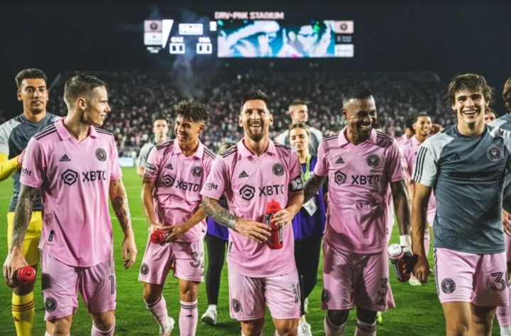 (How Messi was surrounded by all his teammates at Inter Miami, after his spectacular debut)