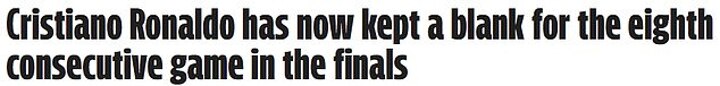 Correio da Manha, meanwhile, highlighted the veteran's struggles in front of goal, running with a headline: 'Cristiano Ronaldo has now kept a blank for the eighth consecutive game in the finals.