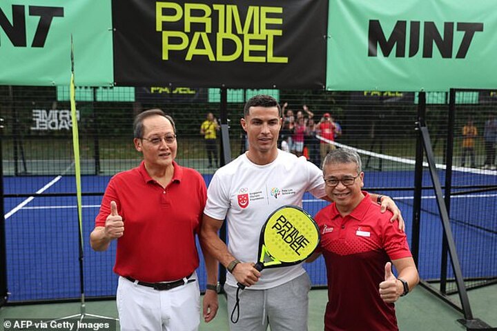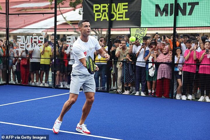 Cristiano Ronaldo has indulged in a padel session while on a post-season trip to Singapore.