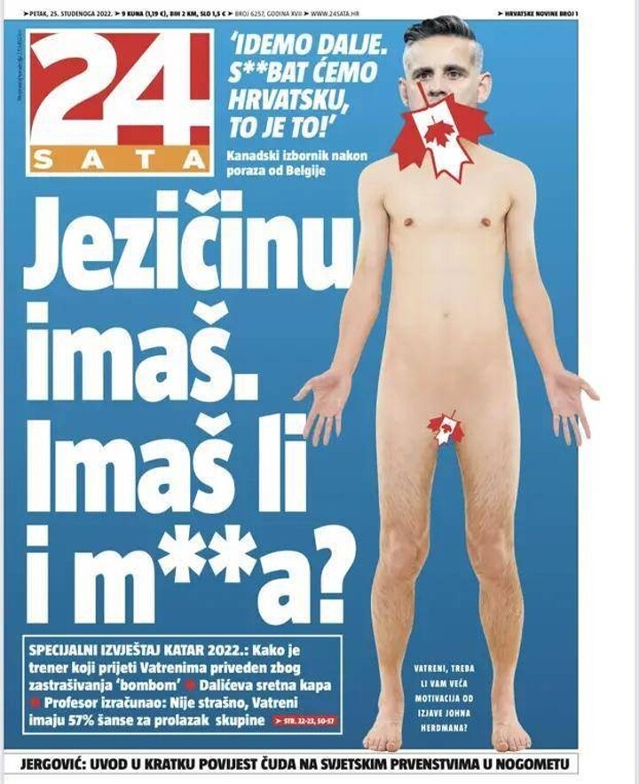 Herdman's comments obviously did not go down well in Croatia. 24sata, a daily newspaper in the country's capital of Zagreb, put the Canadian coach on the front page in interesting style. Alongside a mock photo of Herdman, the headline reads: “You have the mouth but do you have the balls as well?”