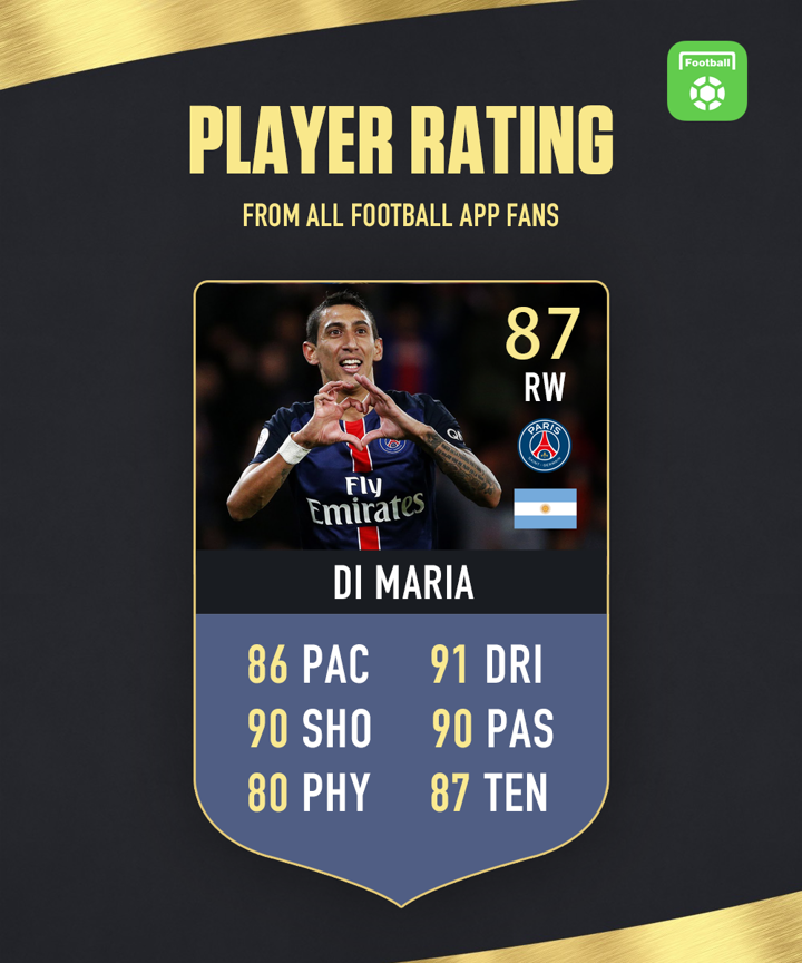 Hello everyone, welcome to - Daily Player Rating! You could be the judge and rate one player every day at 10:00 CET. The results will be declared in the form of Fut Card tomorrow. We released the rating of Di Maria yesterday. He got 87 total points with highest 91 in dribbling. The detailed results are as follows: