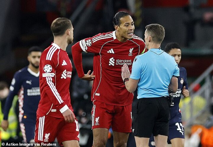 Van Dijk protested, seemingly claiming he was fouled, but the decision to award the penalty was upheld by VAR and Ivan Perisic converted the resulting spot-kick to give PSV a surprise 1-0 lead.