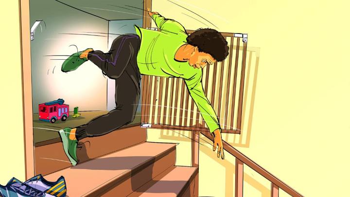 Unfortunately, he remembered it wrongly. Then he fell headlong down the steps.