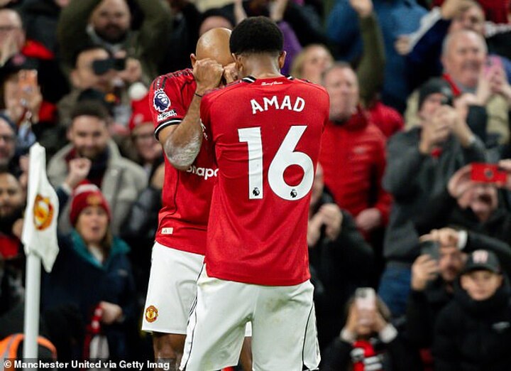 After scoring his first and United's third in the 61st minute, Mbeumo celebrated by busting some moves with team-mate Amad, whom he combined with superbly throughout the game on the right flank.