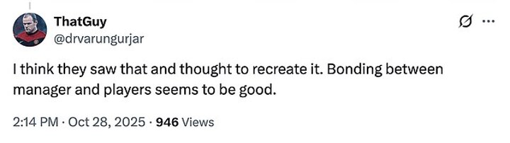 'I think they saw that and thought to recreate it. Bonding between manager and players seems to be good,' one fan posted.