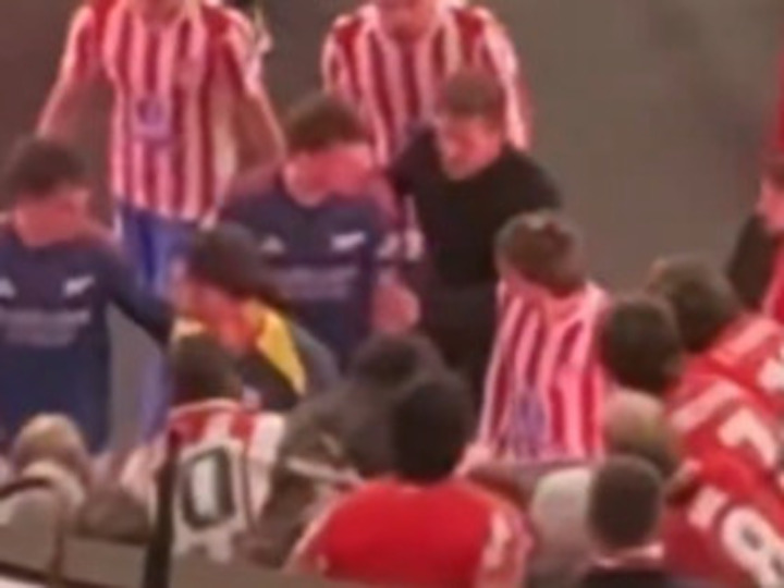 Atletico Madrid boss Diego Simeone and Ben White got into a heated confrontation following Arsenal's 1-1 draw in the Spanish capital. Simeone appeared to take issue with White walking across his side's crest, which is on the turf in front of the tunnel heading into the confines of the stadium.