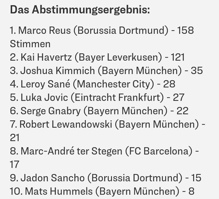 The 30-year-old from runner-up Borussia Dortmund sat down in the "kicker" under sports journalists targeted election with 158 votes in front of Kai Havertz (121 votes) from Bayer Leverkusen and Bayern professional Joshua Kimmich (35).