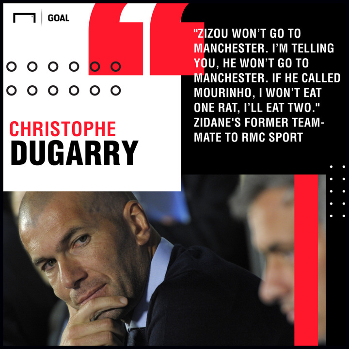Zinedine Zidane continues to see a possible role as successor to Jose Mourinho at Manchester United mooted, but Christophe Dugarry doubts a deal will be done.
