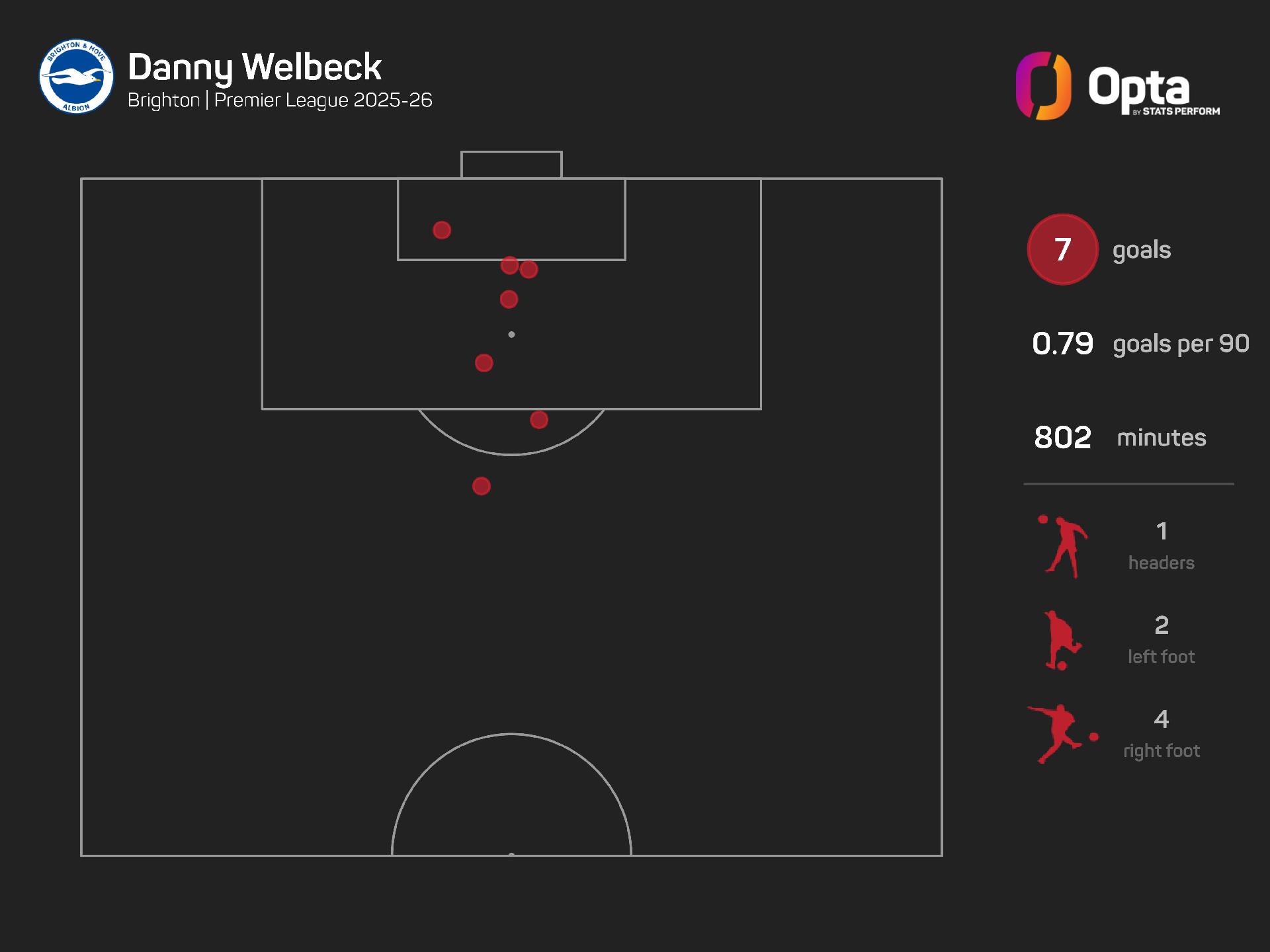 Welbeck has scored seven goals in his last seven Premier League games, with only Erling Haaland (eight) netting more than him since the first game in this run in September.