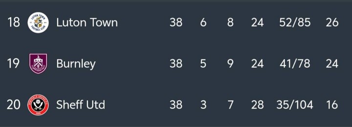 Sheffield United and Burnley have already locked the relegation places in advance.