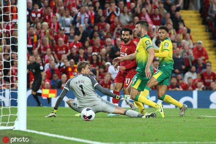 Tras el desafortunado gol, el Norwich intentó empatar el encuentro, incluso tuvo algunas buenas llegadas al área, pero sus disparos se marchaban muy desviados de la portería de Alisson. Pero con este Liverpool no puedes permitirte fallos, porque su definición es letal, como así demostró Salah para lograr el segundo tanto del partido: