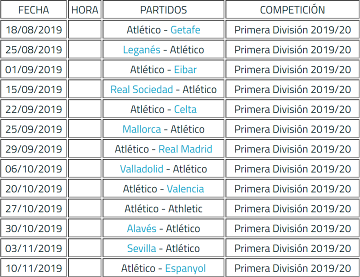 Los partidos que jugará el equipo de Diego Simeone a lo largo del curso.