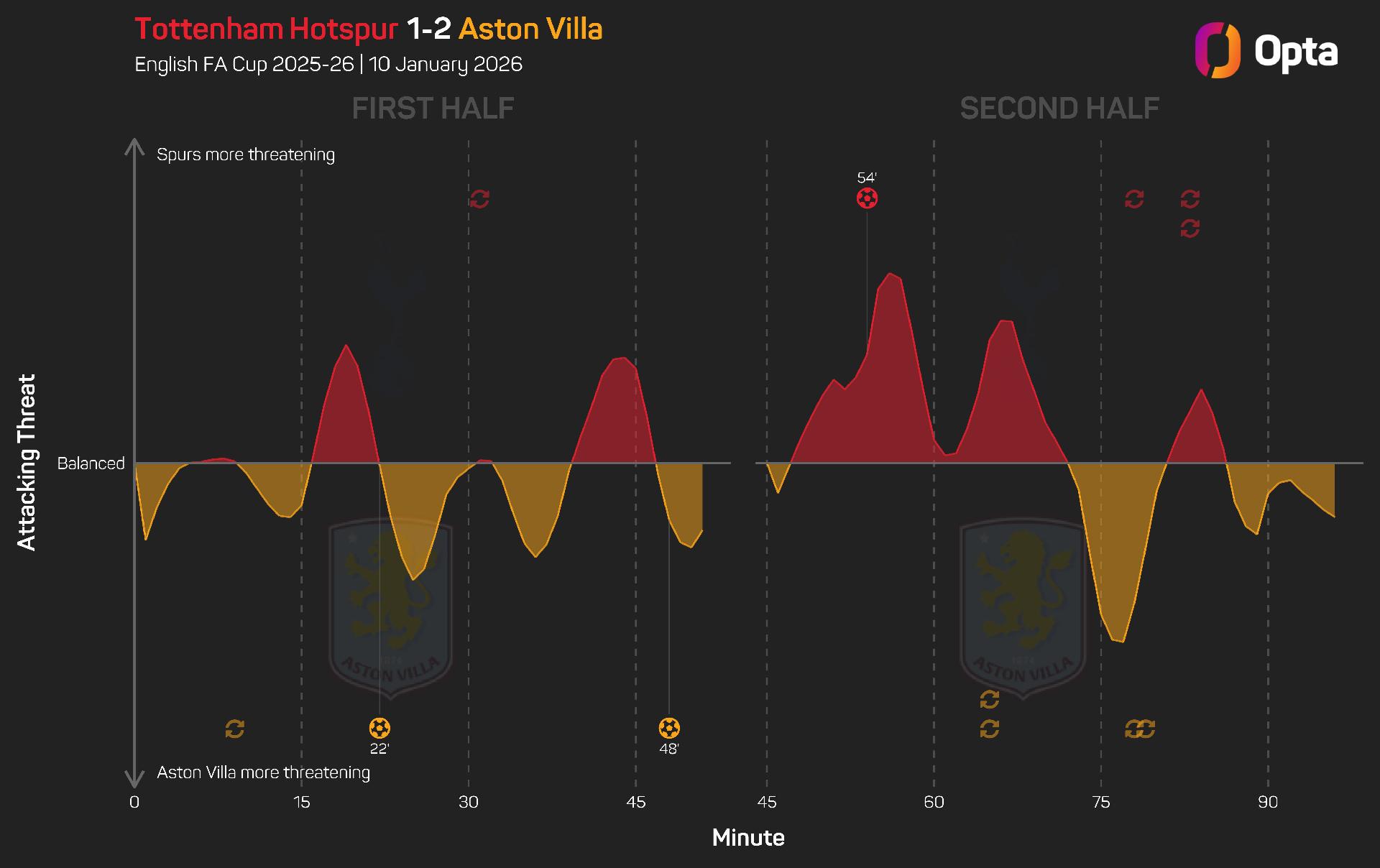 Villa are the first side to eliminate Spurs from the FA Cup in back-to-back seasons since Manchester United did so in 2007-08 and 2008-09 (both in the fourth round).