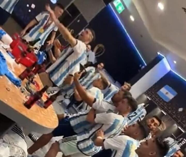 During Argentina's post-match party in the dressing room, Argentina's players celebrated with a conga and started singing in Spanish: 'A minute of silence.'