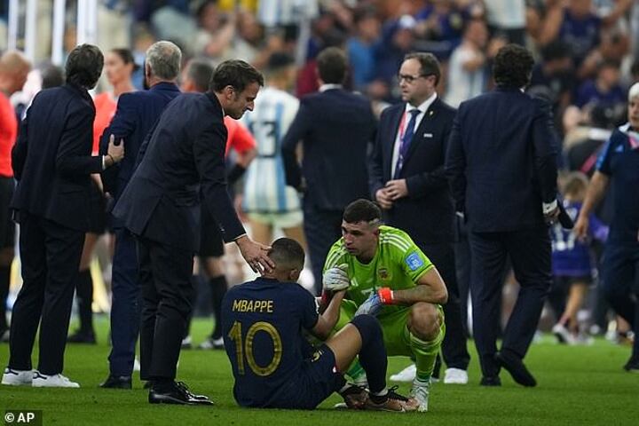 As Argentine fans inside the Lusail Stadium celebrated jubilantly, Martinez went over to console Mbappe, who netted a superb hat-trick for France before scoring his spot-kick in the shootout.