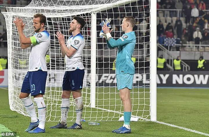 Captain Harry Kane came off the bench in the second half and forced Jani Atanasov into an own goal from a Phil Foden corner after home captain Enis Bardhi scored a rebound having seen his penalty saved by Jordan Pickford.