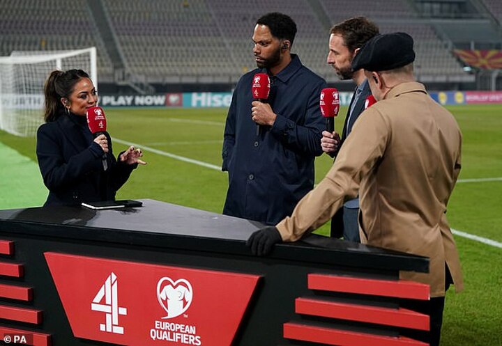 Channel 4 presenter Jules Breach was forced to keep her cool alongside pundits Joe Cole and Joleon Lescott during live coverage of England's draw with North Macedonia on Monday.