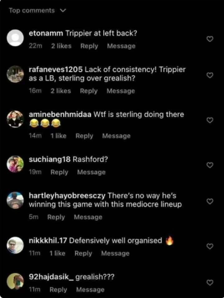Fans also took to Instagram to share their thoughts at the apparent starting XI.