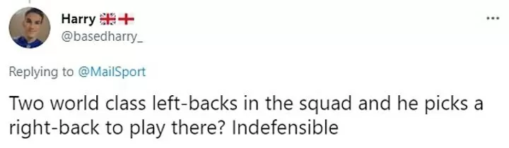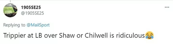 One fan simply tweeted: 'Trippier at LB over Shaw or Chilwell is ridiculous'.