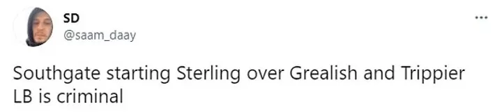 One supporter wrote on Twitter: 'Southgate starting Sterling over Grealish and Trippier LB is criminal'.