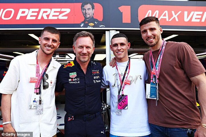 England team-mates Mason Mount and Phil Foden took in various garages, meeting the likes of Lando Norris from McLaren and Red Bull team director Christian Horner.
