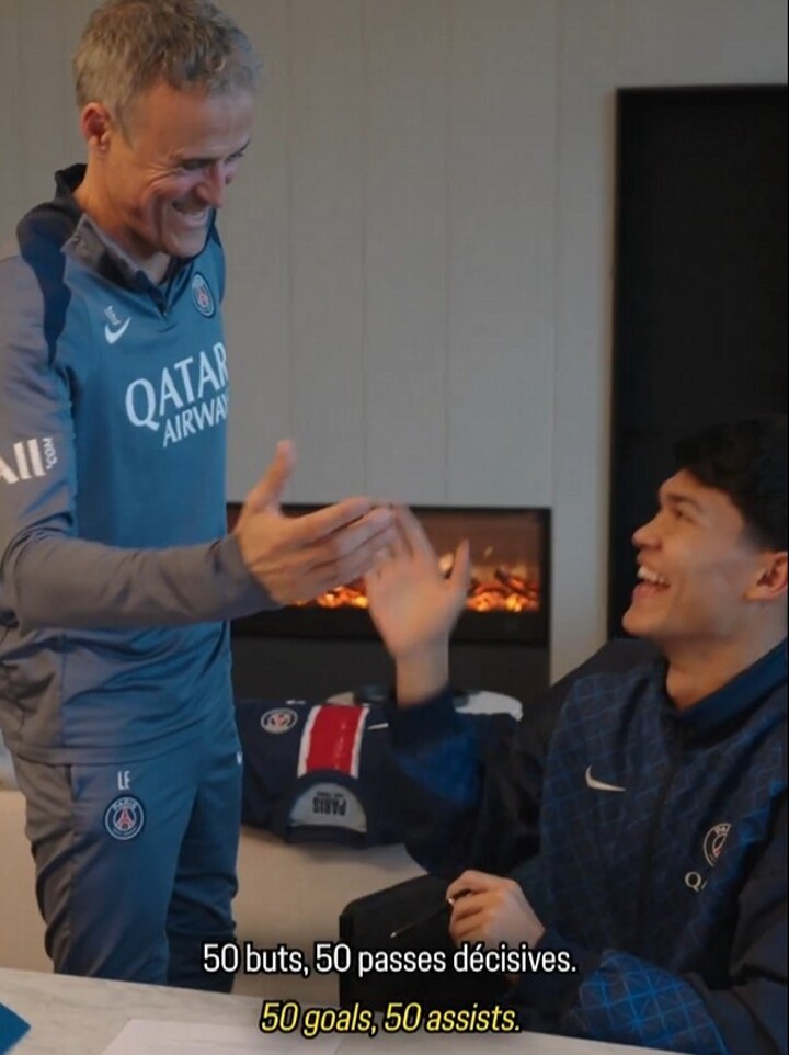 When Dro Fernández signed the contract, applause erupted in the room. At that moment, Enrique stepped forward, pointed to the signature on the contract, and jokingly said to Dro: "Sign here: 50 goals, 50 assists. Thank you."