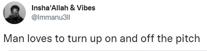 'Man loves to turn up on and off the pitch,' one fan tweeted.