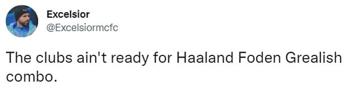 'The clubs ain't ready for Haaland Foden Grealish combo,' a City supporter wrote.