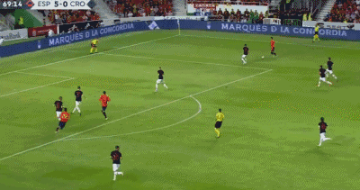 ¡GOOOOL de ESPAÑA! ¡De nuevo es Marco Asensio es el protagonista de la jugada de gol! En esta ocasión recibe en banda derecha, encara y desborda a su defensor, para sacarse un zurdazo que va al larguero de la portería croata. Para desgracia de Croacia, el balón sale repelido a la espalda de Kalinic para posteriormente introducirse en el interior. Goleada de España en la 1ª parte.