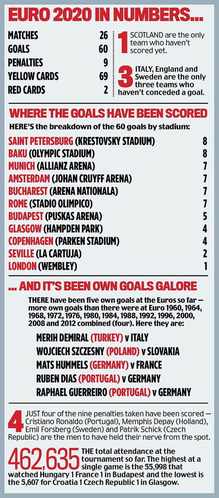 Yet to hit their best rhythm and still waiting for Karim Benzema and Kylian Mbappe to find the net, but the depth of quality Didier Deschamps has at his disposal is clear. They are Euro 2020’s most complete squad and have four points from the toughest group.