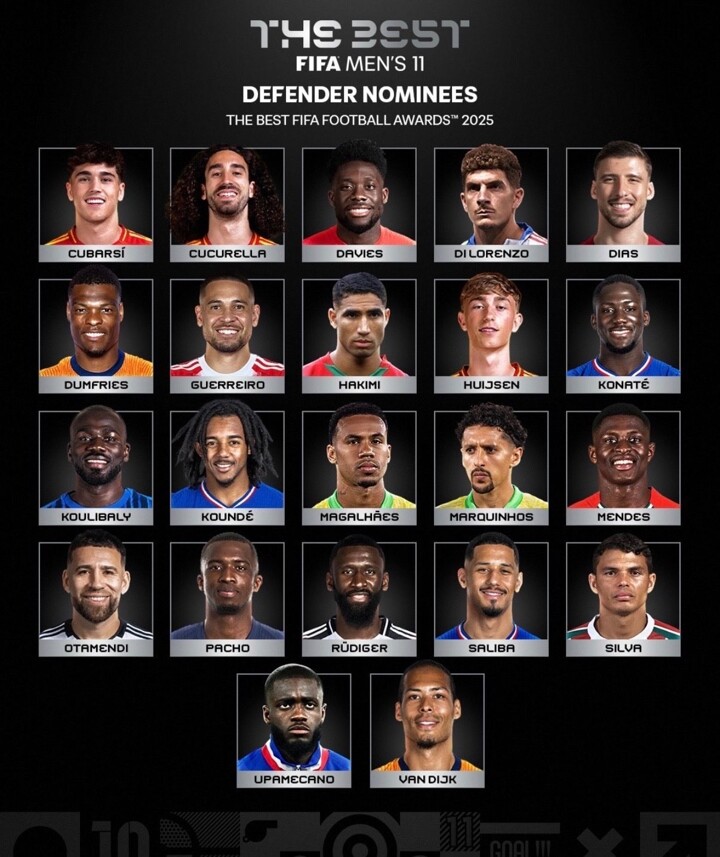 FIFA Best 11 Defender of the Year candidate: Van Dijk, Saliba, Achraf on