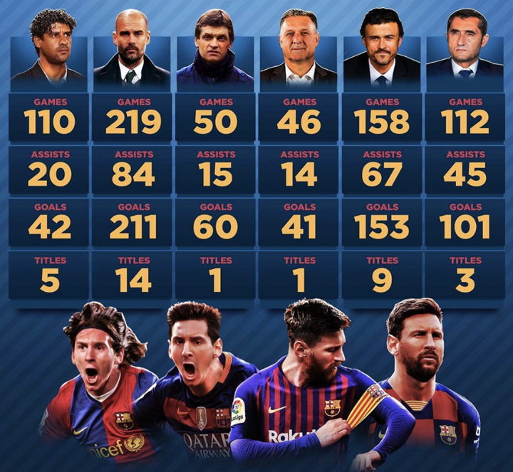 From Rijkaard to Valverde - Review Messi's stats under each Barcelona boss