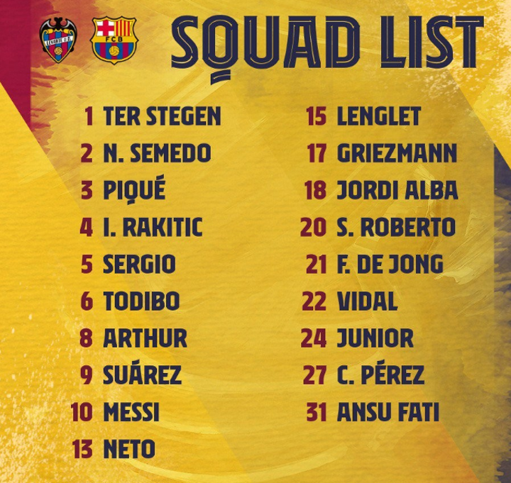 Dembele not in Barca squad for Levante clash as Arthur & Firpo return, Alba in