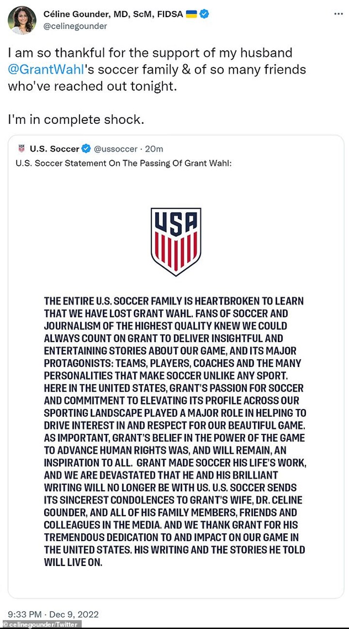 'Yesterday, the American soccer community suffered an unspeakable loss - renowned, massively influential journalist Grant Wahl passed away here in Qatar, while covering this tournament.