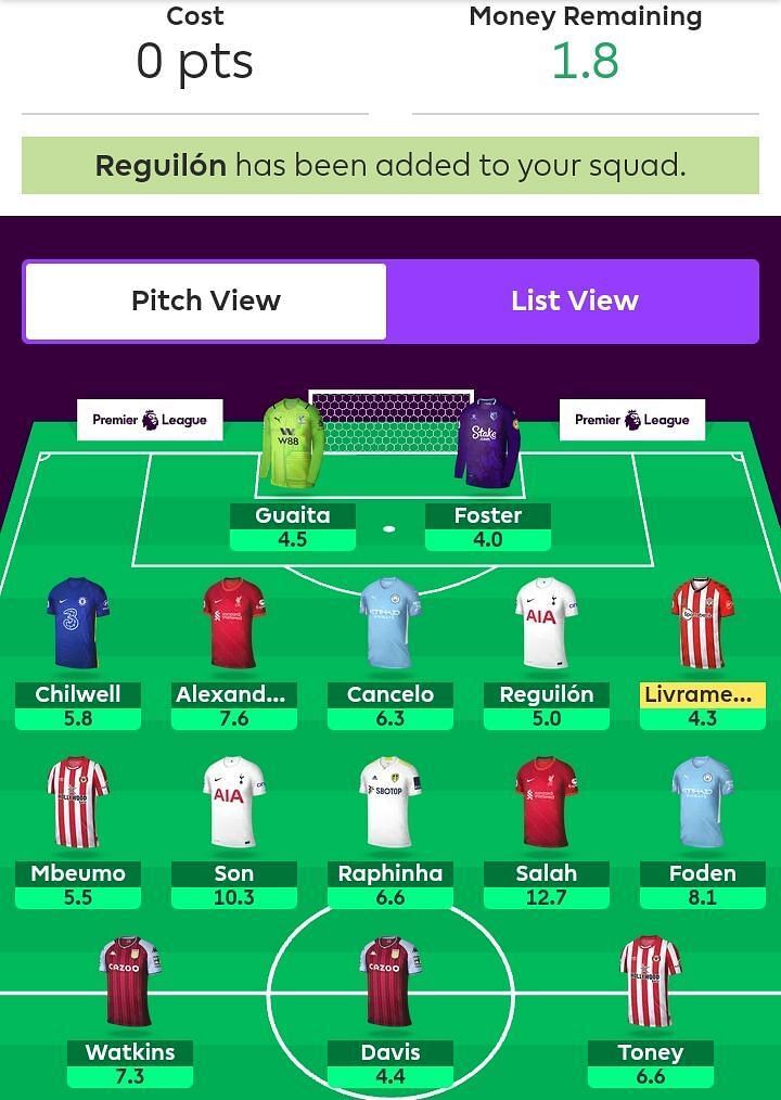 The next transfer is one I'm still pondering upon. While bringing Sergio Reguilon in certainly has lots of positives, I'm a bit hesitant to sell Ruben Dias ahead of Manchester City's excellent run of fixtures until the next international break. Doubling up on a fairly secure starter from arguably the strongest defense in the league is a tempting option.