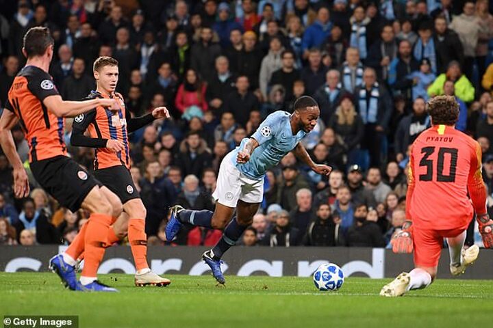 Given the headlines around Manchester City this week, in the seconds after Raheem Sterling went to ground against Shakhtar Donetsk, the silent prayers of the club’s executive class must have been as one.