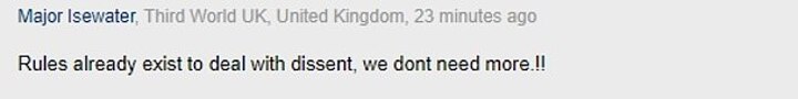 Many were far from pleased with the proposed blue cards, with one reader writing: 'Rules already exist to deal with dissent, we don't need more!!'