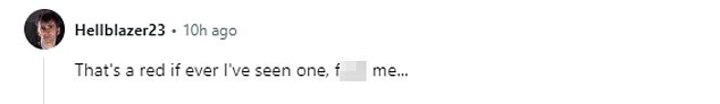 A fourth echoed the sentiment, adding: 'That's a red if ever I've seen one, f*** me...'