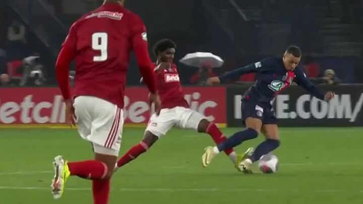 Football fans on social media have leapt to the defence of Kylian Mbappe after he was the victim of a shocking challenge in Paris Saint-Germain's 3-1 win over Brest in the French Cup.