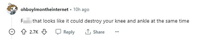 Football fans quickly took to Reddit to voice their frustration at the challenge, with one saying: 'F*** that looks like it could destroy your knee and ankle at the same time'