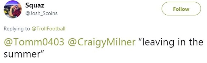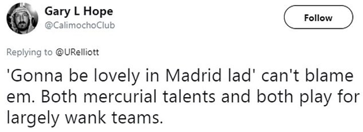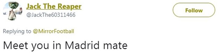 The majority of responses followed a similar theme with one replying 'meet you in Madrid mate' and another saying 'leaving in the summer'.