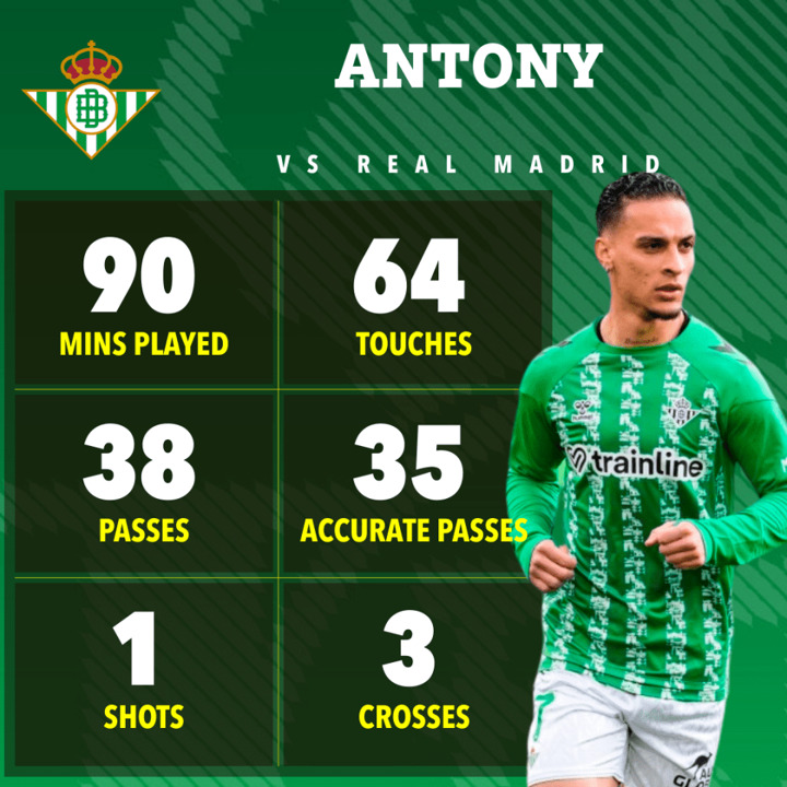 Antony, 25, played the full 90 minutes for Betis as he continued his impressive run of form.