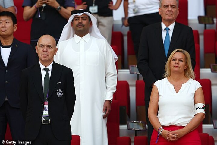 Faeser was later seen sitting next to FIFA president Gianni Infantino with her armband proudly on display. They appeared to share a frosty exchange.
